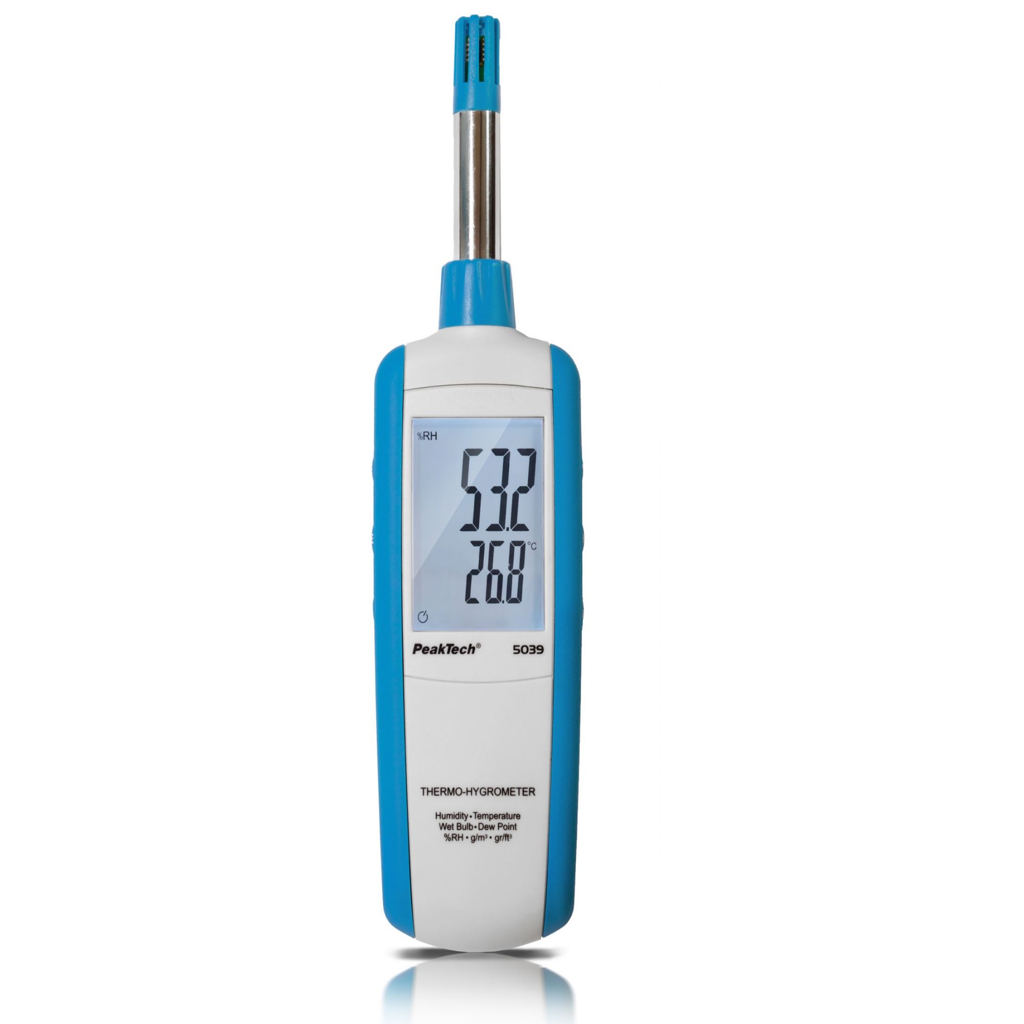 El Termo higrómetro PeakTech P 5039 es un instrumento versátil diseñado para medir la humedad y temperatura ambiental, así como el punto de rocío y la temperatura de bulbo húmedo. Su diseño portátil y su pantalla LCD retroiluminada facilitan la lectura en cualquier entorno. Es ideal para aplicaciones en climatización, almacenamiento, laboratorios y mantenimiento industrial. Además, cuenta con funciones prácticas como retención de datos y apagado automático, asegurando mediciones precisas y eficientes.